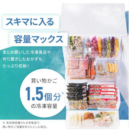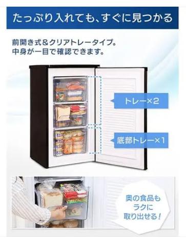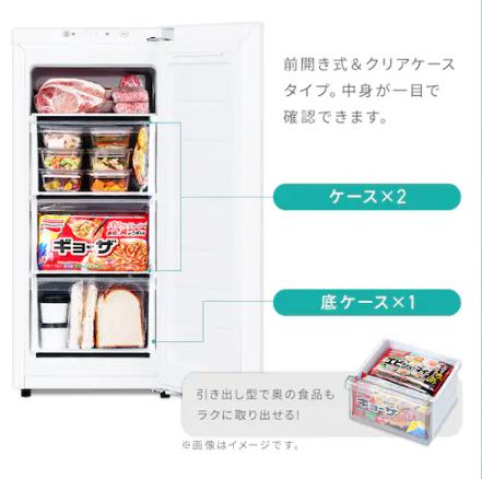 引き出し式で使いやすいのに、価格が比較的リーズナブル。初めてのサブ冷凍庫として選びやすいという声も。コンパクトでありながら満足感が高く、「この価格で引き出し式ならお得」と感じる方が多いモデルです。コスパ重視派にはダントツ人気。